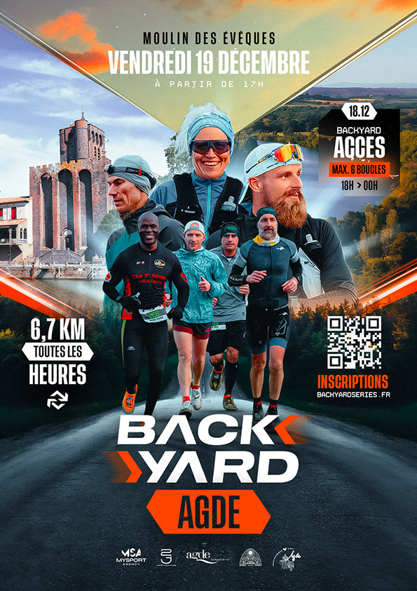 La Backyard Series d’Agde vous invite à un défi d’endurance unique, au cœur de la ville. Le parcours, exigeant et sinueux, serpente dans l’hypercentre historique d’Agde, entre escaliers, ruelles étroites et nombreux zigzags, avant de revenir au Moulin des Évêques, monument du XIIe siècle qui devient votre camp de base. Cette immersion dans le patrimoine urbain, à la fois technique et physique, offre une expérience rare et intense.