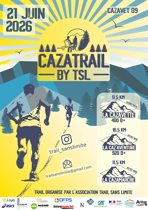L’association « Trail Sans Limite » organise le dimanche 21 juin 2026 le trail Cazavet sans limite, 2 deux courses chronométrées: