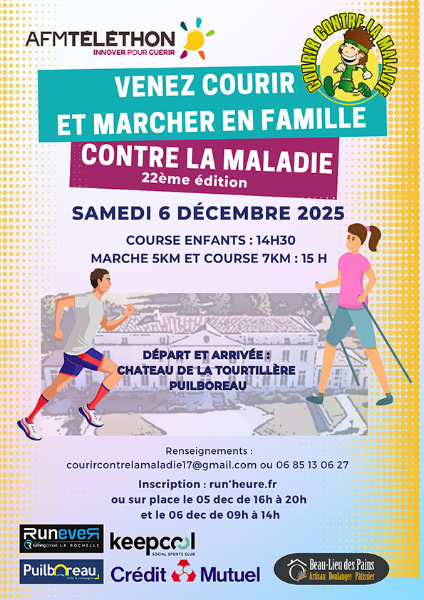 Courir et marcher contre la maladie est une course caritative qui participe à la lutte contre les maladies en reversant tous les bénéfices à l’AFM Téléthon.