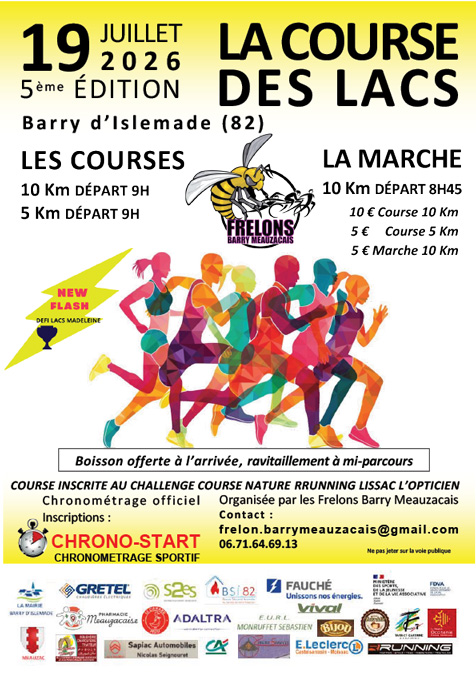 L’association Les Frelons Barry Meauzacais organise le dimanche 19 juillet 2026 sa 5ème course des lacs.